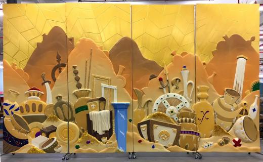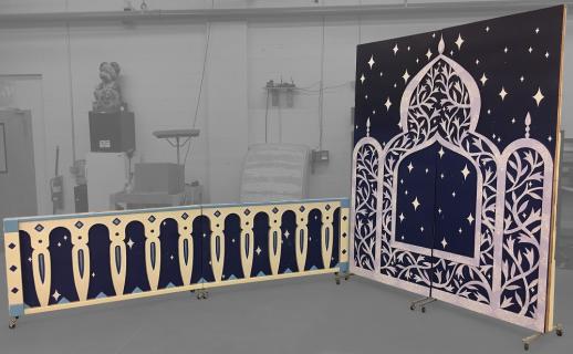 Each scene includes four 4x9 panels on casters to allow for easy scene changes. The panels are double sided to accommodate the flow of your production. They are lightweight to be easily moved by a younger stage crew yet sturdy enough to endure the wear and tear of a full production.