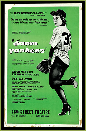 DAMN YANKEES: Faust meets professional baseball in this Broadway classic from the creators of "The Pajama Game."  Middle-aged baseball fanatic Joe Boyd trades his soul to the Devil (the charming but devious Mr. Applegate) for a chance to lead his favorite team to victory in the pennant race against the New York Yankees. As young baseball sensation Joe Hardy, he transforms the hapless Washington Senators into a winning team, only to realize the true worth of the life (and wife) he's left behind. With the help of a handy escape clause and a guilt-ridden temptress named Lola, Joe outsmarts Applegate, returns to his former self and shepherds the Senators to the World Series.  Click here to visit DAMN YANKEES on MTI ShowSpace.