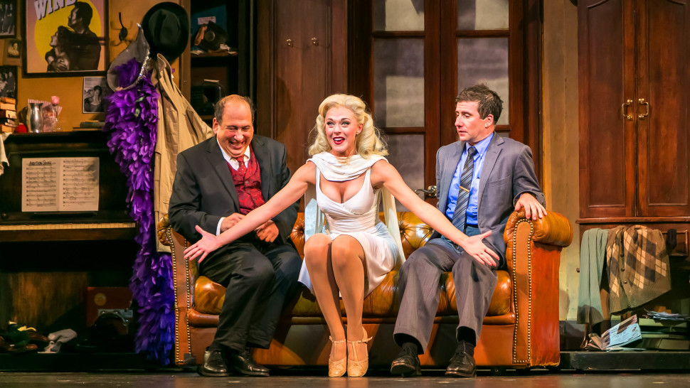 Michael Kostroff, Ashley Spencer and David Josefberg in The Producers at Paper Mill Playhouse (Photo by: Billy Bustamante).