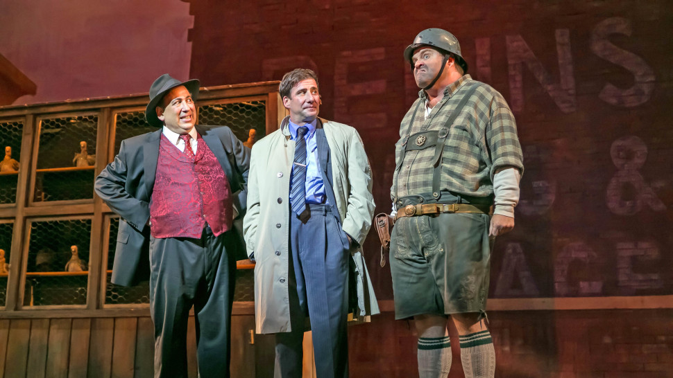 Michael Kostroff, David Josefberg and John Treacy Egan in The Producers at Paper Mill Playhouse (Photo by: Billy Bustamante).