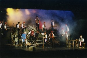 So he set a staging challenge for himself – and his kids. “Discomfort is part of being an actor,” Volpe told them. He had to consider replacing a lad who wasn’t working out, despite the fact that the kid had already put in 150 hours of rehearsals. Then one lead encountered trouble with school authorities and Volpe had to bail him out. “I did this for the show, not you,” he tersely told the offender. Another lad who went all out to provide slides had to hear Volpe tell him that 60% of what he’d worked so hard to get simply wouldn’t be useful – or used. One girl got sick mid-performance and vomited, but she didn’t miss her next entrance.