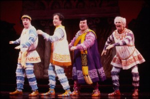 For most musicals, this isn’t ever an issue, for performers simply perform the book by the book. But after original Pseudolus Zero Mostel became infamous for fooling around – adding a line here, subtracting another there, profaning some lines for all to hear – many Pseudoli have taken their cue from him.