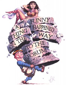 But what difference does it make? Here is the moral, wrong or right: Shevelove and Gelbart’s book may well be the funniest in Broadway musical theater history and the score is by Sondheim, whose name alone ensures songs of unforgettable quality. So you probably can’t go wrong with any production of Funny Thing that you may mount with whatever “improvements” you make.