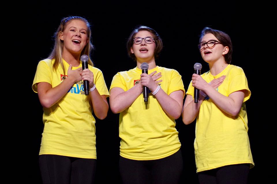 Spotlight Theatre Productions (Sarasota, FL) students Samantha Crawford, Emma Diner & Sarah Johnson snag the national anthem for just about 6,000 attendees at the Kick-Off opening ceremonies. Photo: Marcus Woollen.
