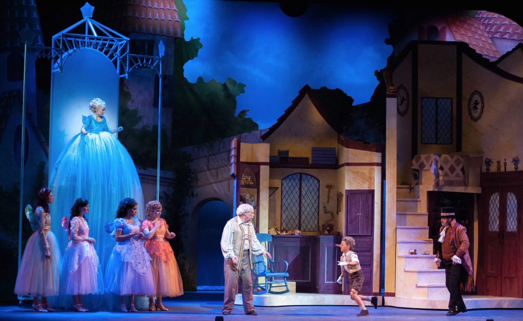 The same Blue Fairy (Emily Vargo) opposite Gepetto (Nicholas F. Saverine in Disney's My Son Pinocchio: Gepetto's Musical Tale at Music Theatre Wichita (Photo © Jerry Fritchman).