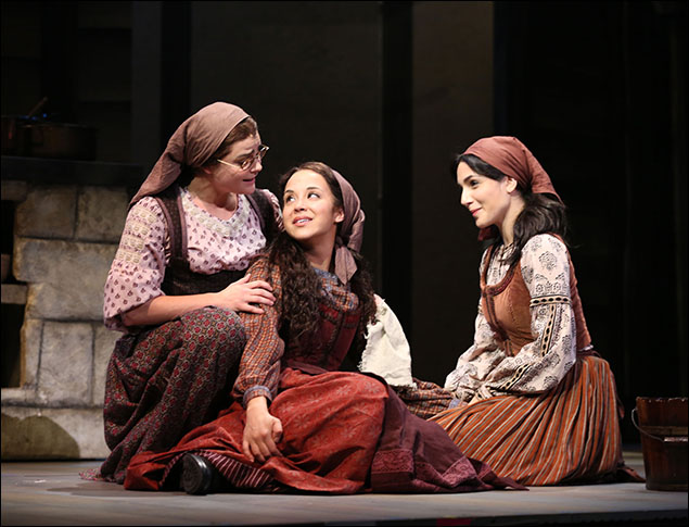 Melanie Moore, Alexandra Silber and Samantha Massell in Fiddler on the Roof at the Broadway Theatre (Photo by Joan Marcus)