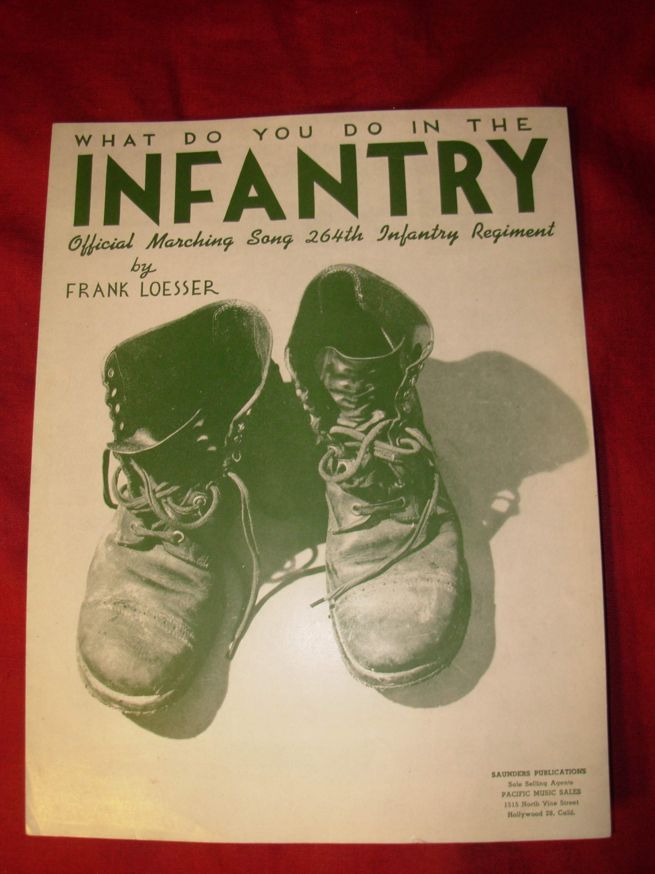 Loesser didn't have to wait long. The military anthem "Praise The Lord And Pass The Ammunition," Loesser's second song without a collaborator, was an instant hit. It was so popular that, as Susan Loesser notes in her biography of her father, "Schoolchildren sang it in assembly; housewives hummed it while they ironed; the Office of War Information, concerned that the public might tire of it prematurely, limited its performance to once every four hours....The song sold over two million records and a million copies of sheet music." In 1943, Loesser found another creative outlet when he transferred to the Special Services Unit. Back in New York, Loesser helped write "Blueprint Specials"-ready-to-go shows for soldiers to perform themselves. These shows consisted of songs, sketches, and even set and costume ideas. Loesser was amazingly prolific during his time in the armed services; his songs from this period include "Thank Your Lucky Stars," "The Road To Victory," and "First Class Private Mary Brown."