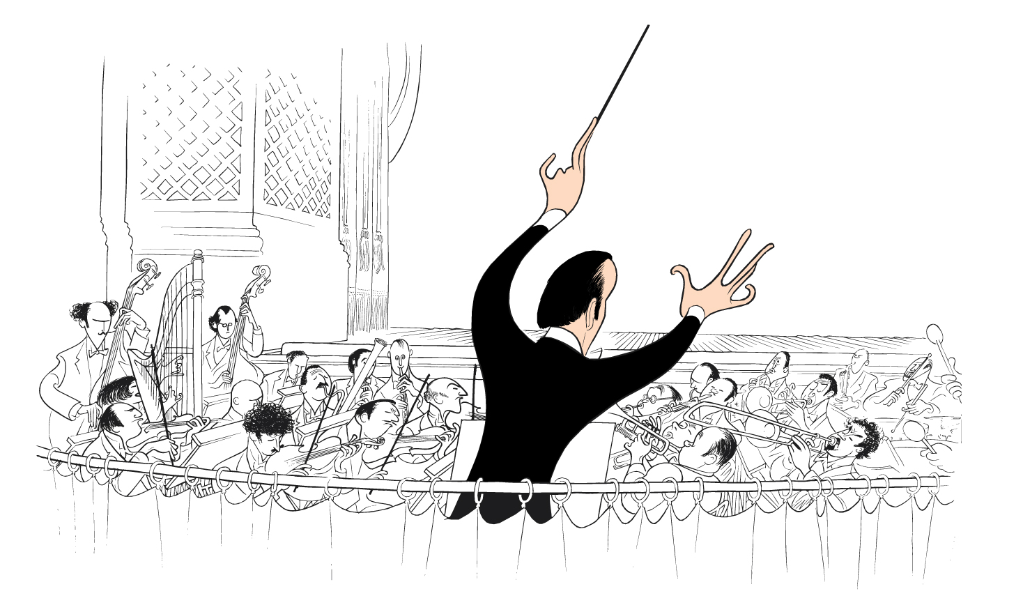 CAPTION: MTI’s logo, which features a left-handed conductor, was adapted from an illustration by legendary artist, Al Hirschfeld, that was commissioned by Music Theatre International.