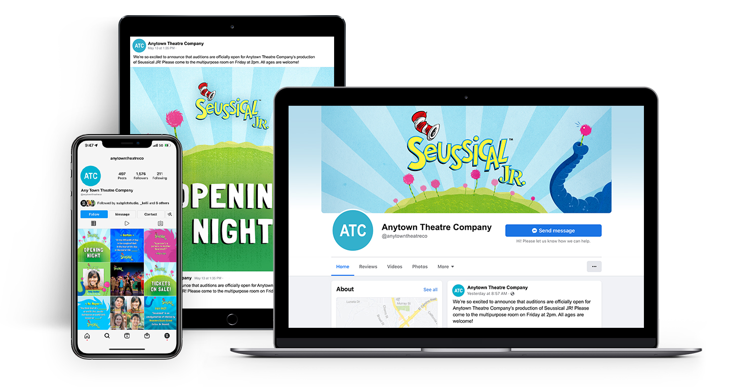 "We are delighted to work with our friends at Subplot Studio to launch these Social Media Marketing Kits. Our customers are already enthusiastically using Subplot's Customizable Show Posters and Artwork resource offered through MTI, and the Subplot team has brought their same creativity and expertise to this Social Media Marketing product," said John Prignano, Music Theatre International's Chief Operating Officer and Director of Education & Development. "Our customers have been asking for MTI to help them take their social media marketing to the next level, and these Kits will certainly make an impact."