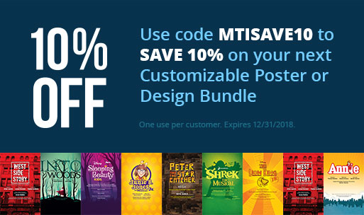 It's been nearly a year since MTI teamed up with Subplot Studio to offer show posters featuring beautiful, eye-catching designs that can be customized online in minutes…and so far the response has been INCREDIBLE! To celebrate the anniversary of the partnership, we're offering 10% off your next Customizable Show Poster or Design Bundle.