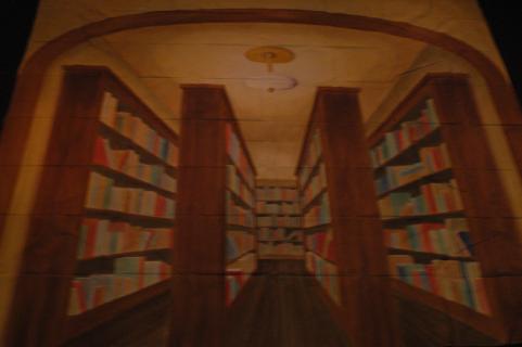 Music Man, Interior Library Stack Backdrop: Muslin