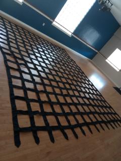 We have a cloth castle portcullis gate drop available for rent. It measure 14' 5"w x 18'h. It has loops on the bottom to add a pole to weight it. Price for rental is $150/week. Can ship anywhere in the continental U.S. Shipping is extra.