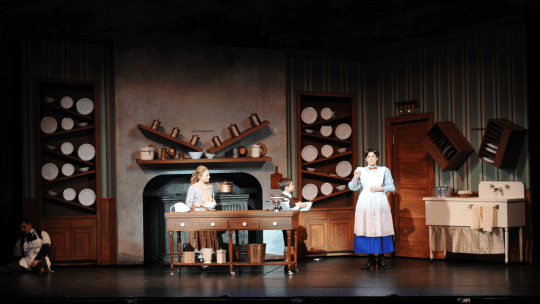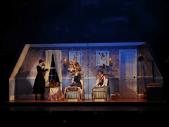 This remarkable set and props package based on the Disney classic and exclusively original in design by Timothy R. Mackabee was built in 2015 and designed for fast transitions with magical theater effects, including the nursery elevator. It travels in three 53' semi-trailers and fits in larger proscenium style houses. Flying rigs not included.