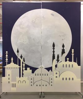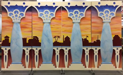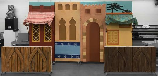 Each scene includes four 4x9 panels on casters to allow for easy scene changes. The panels are double sided to accommodate the flow of your production. They are lightweight to be easily moved by a younger stage crew yet sturdy enough to endure the wear and tear of a full production.