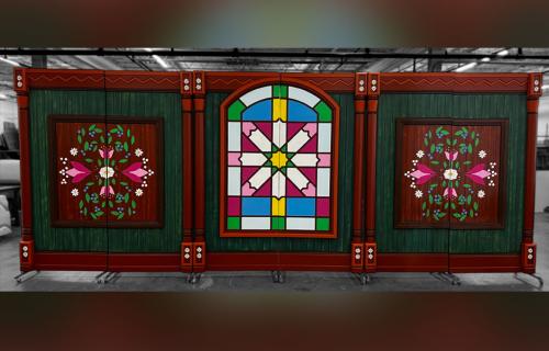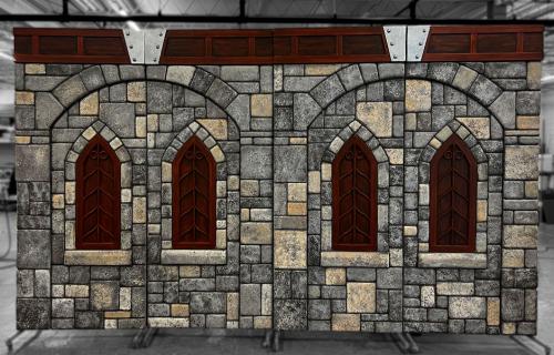 Each scene includes four 4x9 panels and on casters to allow for easy scene changes. The panels are double sided to accommodate the flow of your production. They are lightweight to be easily moved by a younger stage crew yet sturdy enough to endure the wear and tear of a full production.